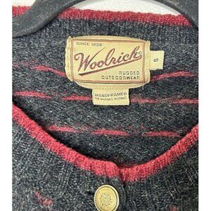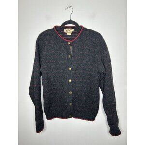 Woolrich Vintage Women's Gray Red Fall Wool Button-Down Sweater Size Small