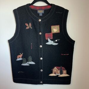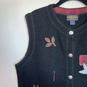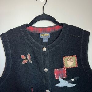 Woolrich Vintage Button Up Embroidered Patch Vest Black Cottagecore Grandma Granola Girl