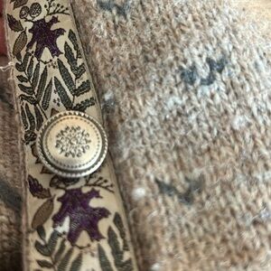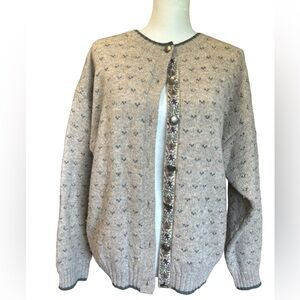 Woolrich Vintage Wool Cardigan Handframer Women’s Size Large Fall leaf Trim Decorative Silver Buttons
