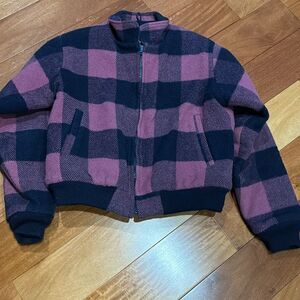 Woolrich Vintage Wool Jacket Plaid Zip Up Women’s Made In USA Bomber Style Sz M in great condition.