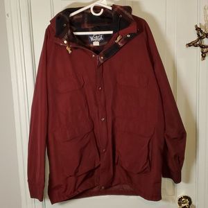 Woolrich Vintage Hooded Rain Jacket Windbreaker XL Burgundy Plaid Lined