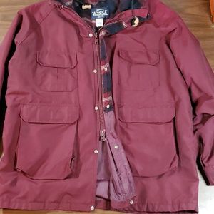 Vintage burgundy with matching wool blend flannel lined windbreaker or rain coat jacket.