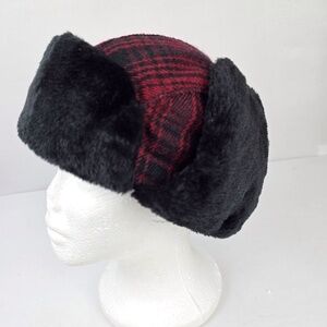 Woolrich Winter Trapper ear Hat Faux Shearling Plaid Tartan Red Size Large L