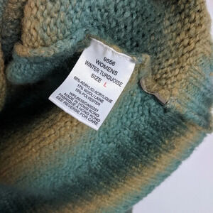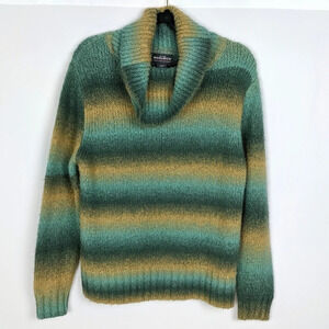 Woolrich Winter Turquoise Cowl Striped Sweater Top Fuzzy Wool Blend pullover long sleeves. Sz.L