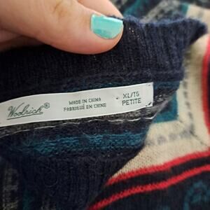 Woolrich Women XL Petite Navy Fair Isle Stripped Wool Blend Sweater