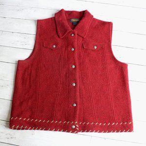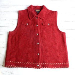 Woolrich Womens 100% Wool Red Vest Women's Size L Metal Buttons