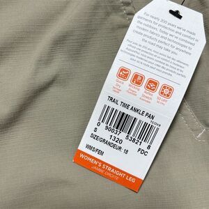 These Woolrich women's ankle pants in size 18 are designed for comfort and functionality. Made from a blend of nylon and spandex, they offer stretch comfort and feature quick-dry, wicking fabric. The solid gray pants have a straight leg style and provide 50 UPF sun protection. Manufactured in China, they are new with tags.