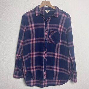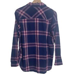 Woolrich Womens Button Up Long Sleeve Blue Red Flannel Shirt Size Large.