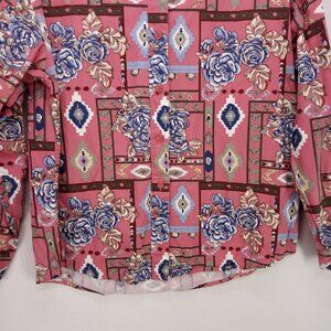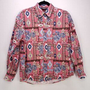 Woolrich Womens Button Up Shirt Medium Pink Floral Print Long Sleeve Cotton