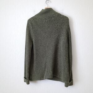 Woolrich women's sweater size large heavy chunky knit cardigan mock neck long sleeve LT Olive Heather 100% cotton 13641 perfect for fall and winter length 27 flat across under arm 22"