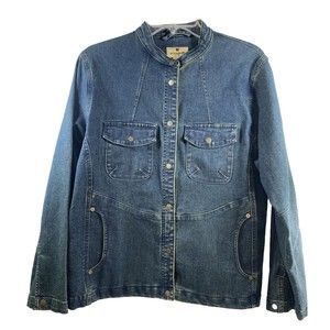 Woolrich Women’s Denim Jacket Stretch Long Sleeve Pockets Snap Up Dark Blue Sz M