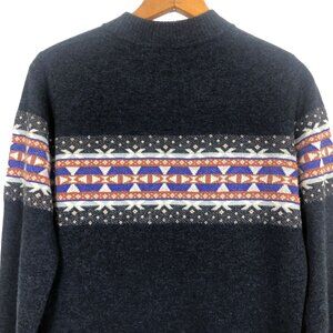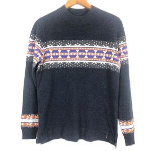 Woolrich Women's Fair Isle Sweater Alpaca Wool Blend Mock Neck Navy Blue