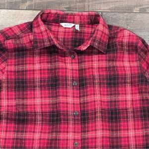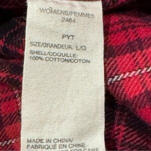 Woolrich Womens Flannel Shirt Button Up Large Long Sleeve Red Plaid Metal Button