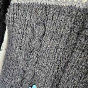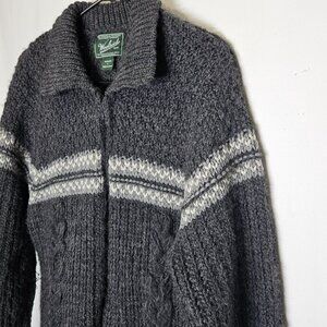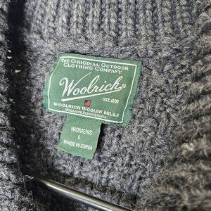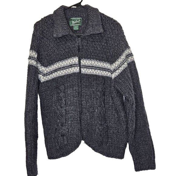 Woolrich Womens Onyx Heather Wool Lambswool Cable Knit Sweater Jacket L Cabin