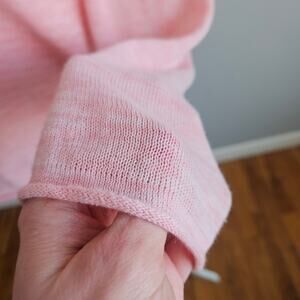 Soft and breathable Woolrich sweater in a size Medium, crafted from a ramie-cotton blend for a lightweight and airy feel. Features a delicate tie-neck detail, long sleeves, and a relaxed fit for effortless layering. The heathered pink hue adds a feminine touch, making it perfect for casual wear, weekend outings, or transitional seasons. Style it with jeans for a cozy everyday look or layer over a tank for added versatility.
