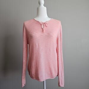 Woolrich Women's Ramie Cotton Blend Sweater Petal Pink Tie Neck Lightweight M