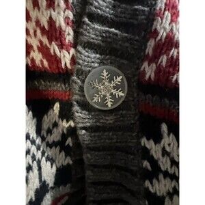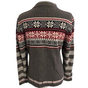 Woolrich Women’s Red and Gray Button Front Cardigan Fairisle Sweater Size Medium
