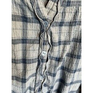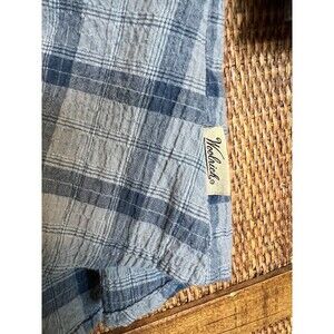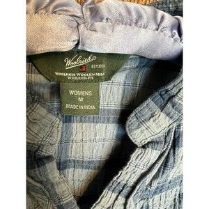Woolrich Womens Shirt Blue Ruffled Plaid Flannel Button Down 100% Cotton Medium
