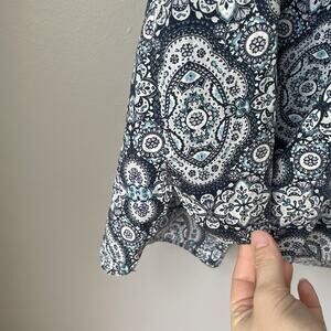 Woolrich Womens Short Sleeve Cotton Blend Lightweight Paisley Blouse Sz L Blue