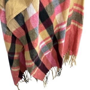 Woolrich Womens Striped Poncho Fleece Fringe Beige Pink Jacket Cardigan sz O/S