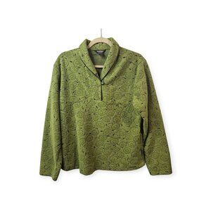 Woolrich Womens Sweater Size M Fleece Pullover Long Sleeve Green Leaves Outdoor