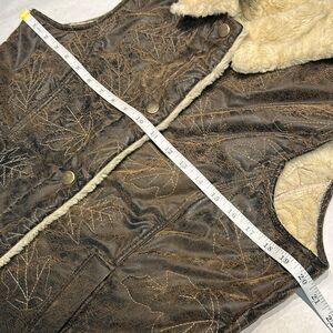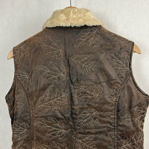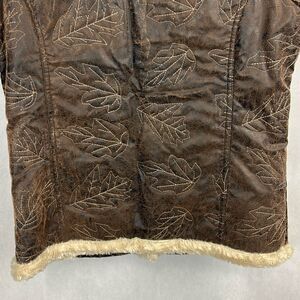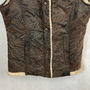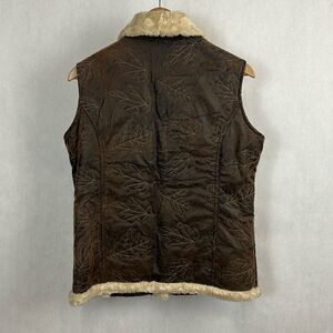 Woolrich Womens Vest Sz Medium Brown Faux Leather Sherpa Faux Fur Lined Snap But