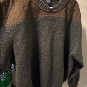 Woolrich Wool Knit Vintage Green Pullover Sweater Men’s XL Suede Padded Outdoor