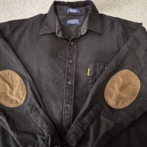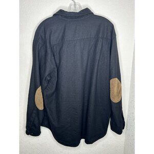 Woolrich Wool Shirt Mens Extra Large Black Trail Shirt Virgin Wool Suede Elbow Patches.