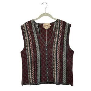 Woolrich Wool Striped Sweater Vest Vintage Women's Sz M Claret Red Grandpacore