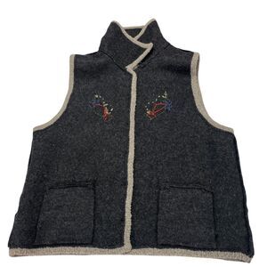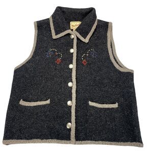 Woolrich Vest Womens M Gray Wool Grandma Embroidered Gorpcore Button Front.