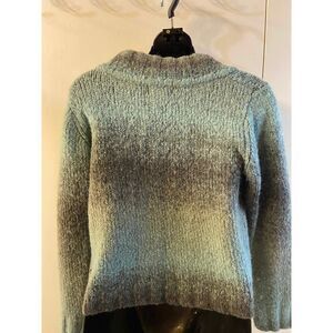 Woolrich Wool blend Cropped Ls sweater Womens Small S Aqua & Gray color block