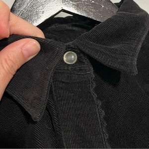 Woolrich black fine corduroy button snap top w/ lace trim XL womens 100% cotton
