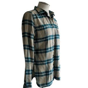 Woolrich button down flannel plaid shirt teal deep aqua gold white womens small