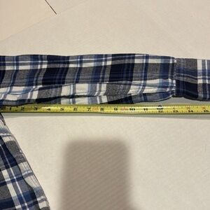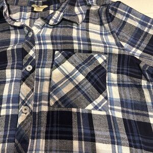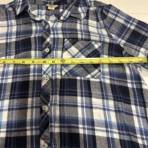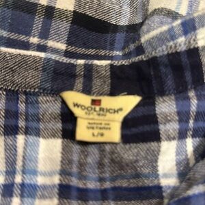 Woolrich cotton long plaid flannel shirt button down blues whites & black large