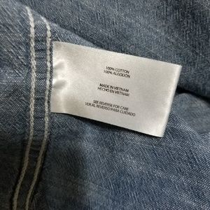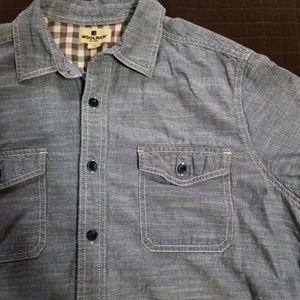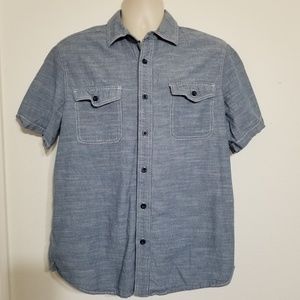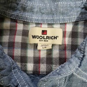 Nice Woolrich Denim button short sleeve. light blue denim material with front button pockets. 100% cotton. no flaws. size large.