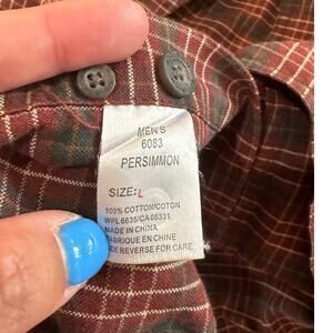 Woolrich men's long sleeve button down persimmon plaid brown red size large