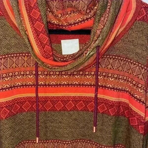 Woolrich mile run cowl neck tunic red‎ and orange Aztec print size XL