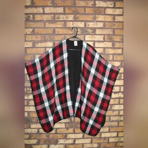 worn once! beautiful plaid and reversible black side black, poncho sweater. super soft and so chic!