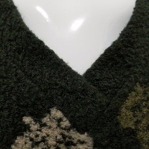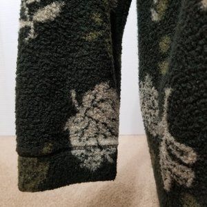 Fall outdoors themed leaf print v-neck fleece-y pullover sweater. Side split. VINTAGE!