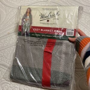 Woolrich textured plaid cozy blanket wrap with fringe