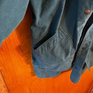 The wool Astec pattern part of the jacket is removable so then it just turns into a regular teal jacket. The jacket is heavy duty and is very durable. My mother gave it to me, but it is not my style, and it no longer fits her so we both decided to sell it. There is a small stain on the back that is barely noticeable. I noticed it only when I went to take the photo.
