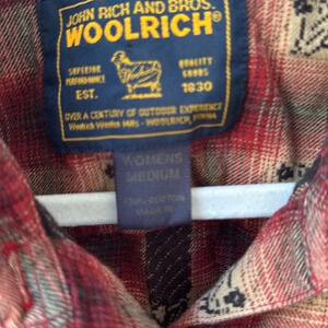 Woolrich women’s 100% cotton button down with sheep animals plaid, good quality