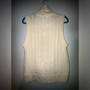Excellent condition Woolrich cream/ ivory colored fisherman knit sweater vest with brown buttons. Has the extra button. I don’t think it was ever worn.