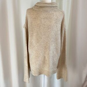 Woolrich-Knit Fringe Cowl Neck Flared Sleeve Sweater -Oatmeal- Size XL