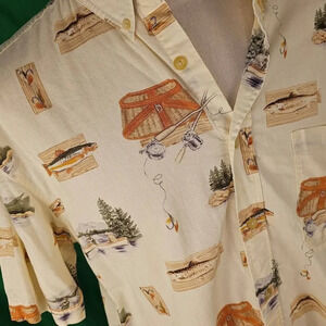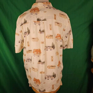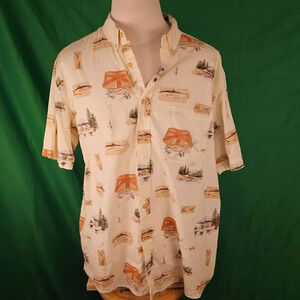 Woolrich Mens Fishing Print Short Sleeve Hawaiian Button Down Camp Shirt XL