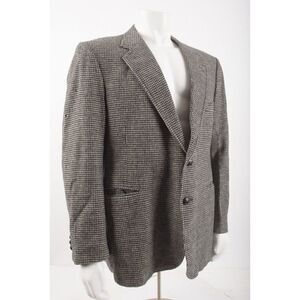 Woolrich Mens Wool Houndstooth Blazer Suit Jacket Large Black White Sport Coat