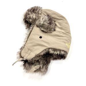 Woolrich Stylish aviator hat with tan exterior. Features plush brown faux fur lining. Perfect for cold weather.