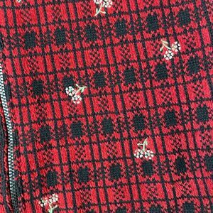 Vintage-inspired Woolrich women’s sweater vest featuring a bold red and black plaid knit accented with delicate floral embroidery. Designed with a full zip front, collared neckline and soft knit construction for comfort and warmth. Excellent pre-owned condition. Smoke free home. 24hr shipping. Bundle and Save!