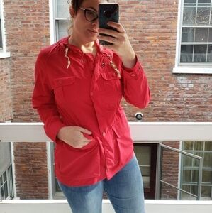 Woolrichs Cherry Red Windbreaker Utility Jacket Size Small