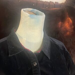 Snap button shirt in soft corduroy. Pit to pit measurement of approximately 27 inches and 29 inches long. Excellent condition